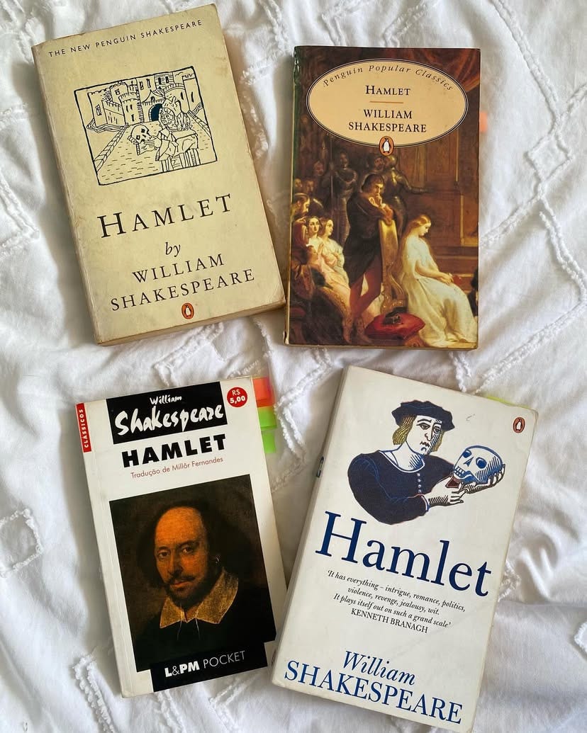 Even though it's not exactly a book, if you asked me, I would say that Hamlet is my favourite book. People are probably tired of hearing me say that ‘everything is Hamlet,’ but everything IS Hamlet. I mean, countless literary, cinematographic, and even musical works have some reference to Hamlet — just pay attention and you'll start seeing Hamlet everywhere.