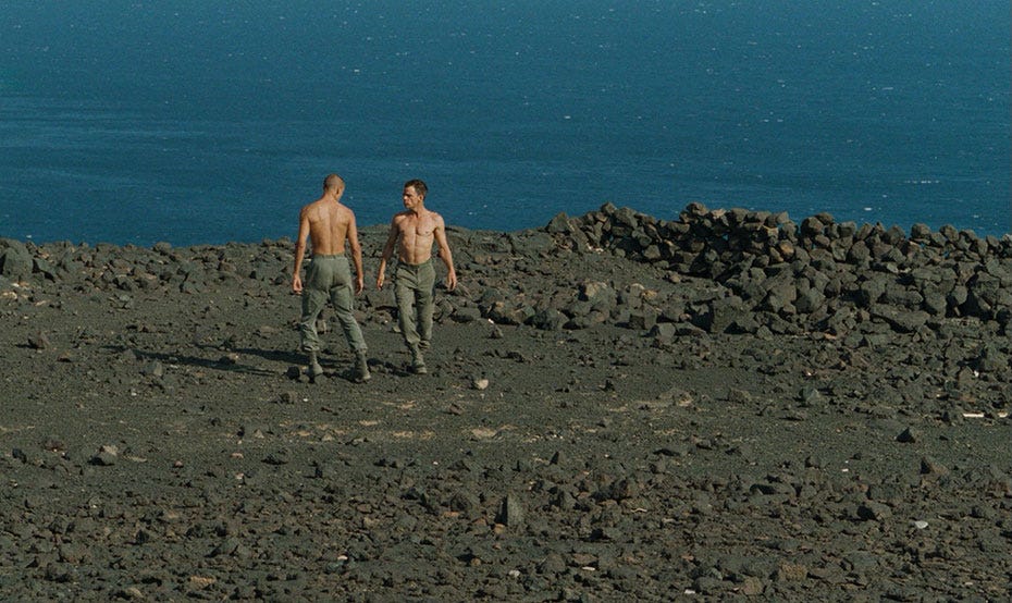 I realized after watching this film that I love military films, not the action ones that glorify violence like Rambo, but the ones that explore the futility of war and the male ego (and its fragility) through the most “manly” institution in society, from The Iliad to the present day. Throughout the movie, I had the feeling that something very strange and very gay was going on, but I didn't know (and still don't know) exactly what; it's all so subtle and quiet that you have to pay close attention to capture the tension that builds up slowly - so slowly that when the end comes and you think nothing has happened, it was actually happening all along. Beau Travail is the story of soldiers from the French legion camped in Djibouti, and commander Galoup's obsessive routine changes with the arrival of soldier Sentain.